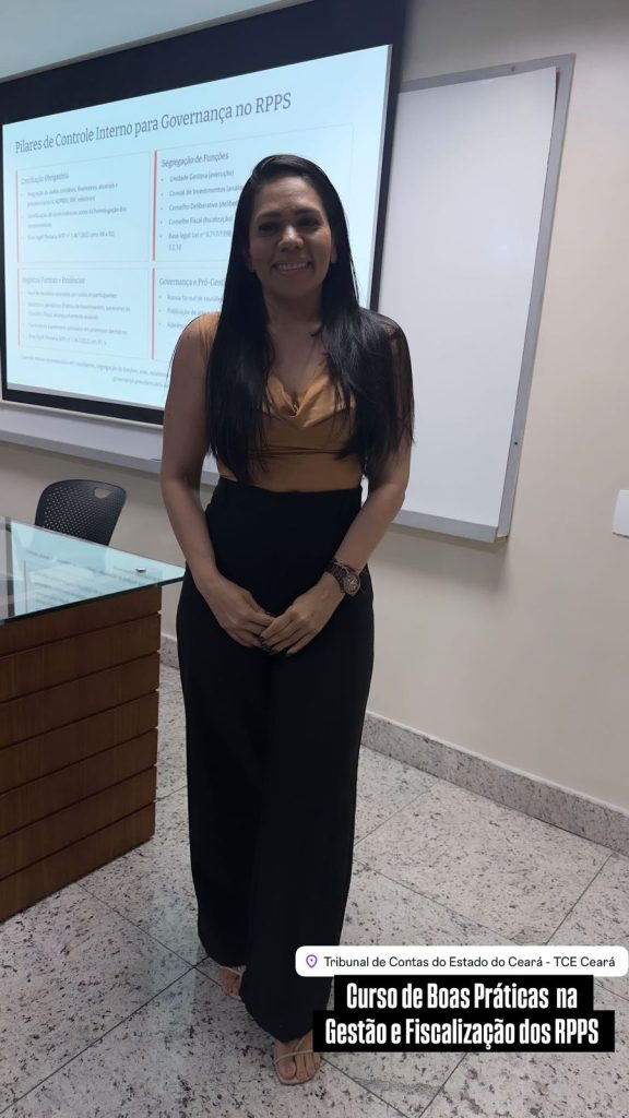 A Superintendente do Instituto de Previdência de Quixadá (IPMQ), Adrycia Karoline Fernandes Silva, participou recentemente do curso “Boas Práticas na Gestão e Fiscalização dos Regimes Próprios de Previdência Social (RPPS)”, promovido pelo Tribunal de Contas do Estado do Ceará (TCE-CE).